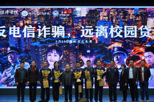 宣讲结束后,警官们随机抽取在场师生进行互动,现场解释了许多同学们关注的防诈骗问题,并为大家送出礼品。同时根据刚刚所展示的防诈骗宣讲内容,警官们邀请师生一同模拟电信诈骗互动,模拟内容妙趣横生,同学们踊跃报名参加。