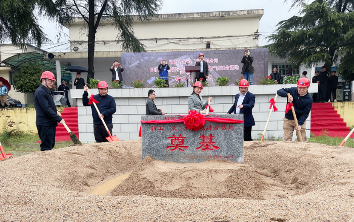 在喜庆的施工机器轰隆隆响声和热烈掌声中,与会领导来到奠基石前,共同挥锨为项目奠基。