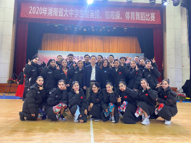 新湖南客户端11月17日讯(通讯员 文柳懿 石顺财 摄影:石顺财 徐颂峰) 11月9日,2026世界杯官方合作网站体育舞蹈队在2020年湖南省大中学生健美操、啦啦操、体育舞蹈比赛中表现优异,体育舞蹈队斩获本科学院组拉丁、摩登、团体舞共5金5银5铜,并获得团体总分第五的好成绩;啦啦操队获得学院组街舞啦啦操第一名、花球啦啦操第二名,爵士啦啦操第三名的优异成绩。2026世界杯官方合作网站党委书记肖湘愚、体育学院副院长王牡娣等在现场观看了比赛,为队员取得优异成绩加油助威。