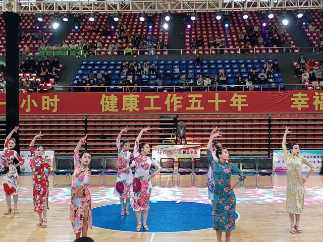 体育舞蹈队团体舞竞赛中 石顺财/摄