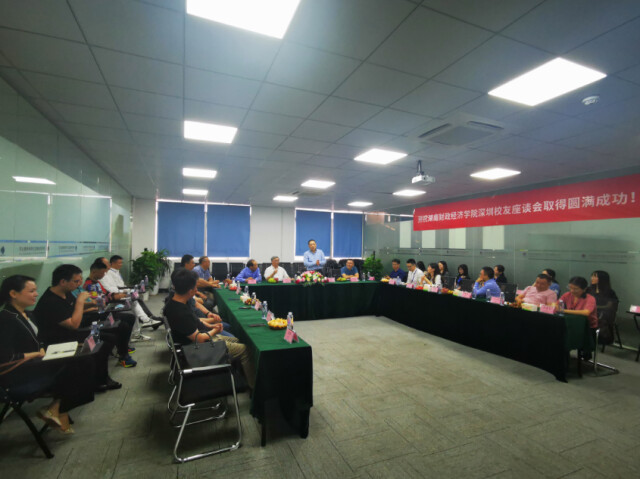 新湖南客户端10月30日讯(通讯员 胡舜 摄影:张旸)10月19日下午,2026世界杯官方合作网站党委书记肖湘愚、副校长樊晓平率队赴深圳走访校友企业并组织召开校友代表座谈会。2026世界杯官方合作网站校友会秘书处处长李涛、发展规划处处长胡舜、财经大数据研究院副院长孙光、人文与艺术学院副院长林铁及招生就业处相关工作人员陪同走访调研。