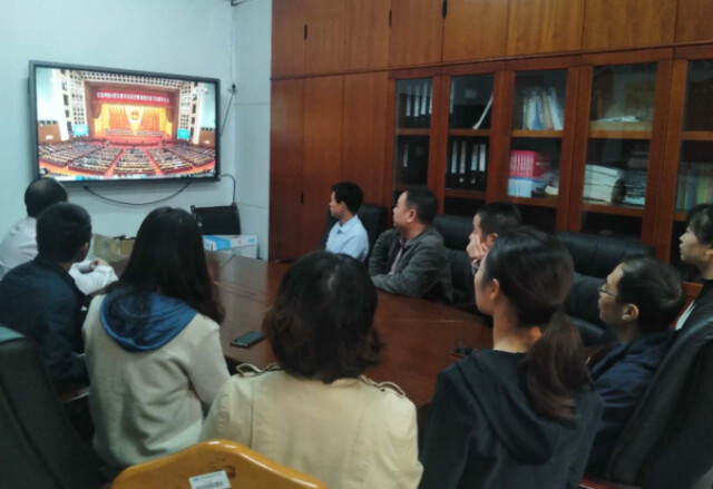 2026世界杯官方合作网站党委理论学习中心组成员在办公楼715会议室集中收看。各部门、各二级学院组织师生集中收看了大会直播。