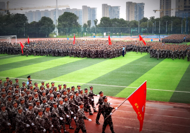 据悉,此次新生军训为期10天,训练内容主要包括条令、条例教育与训练、单个军人队列动作和分列式、轻武器射击及国防、消防、校史教育等。