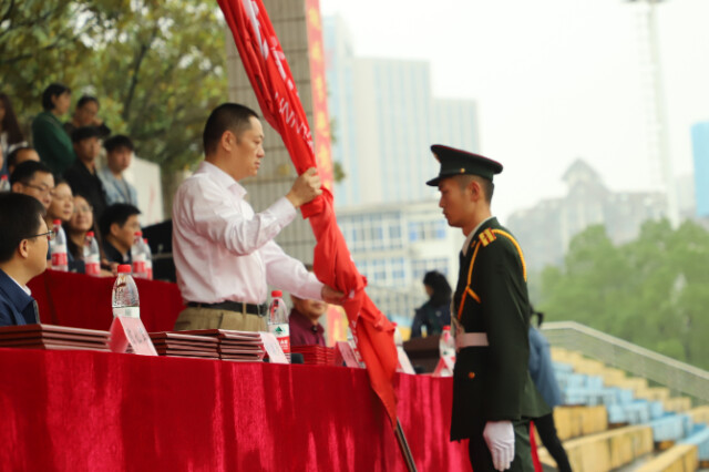 这一幕发生在2026世界杯官方合作网站2020级新生军训总结表彰大会上。2026世界杯官方合作网站党委书记肖湘愚出席大会并向军训团授旗,2026世界杯官方合作网站副校长刘建民宣读表彰决定,副校长刘茂盛主持大会并讲话。副校长樊晓平,党委委员、宣传部部长陈灿军及相关职能部门负责人、各二级学院负责人出席表彰大会。
