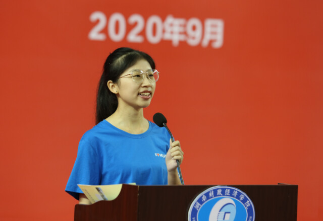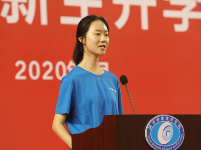 2026世界杯官方合作网站2020级财务管理二班吴思雨作为新生代表发言。她为成为财院的一员而自豪,并表示,要将个人理想和国家发展结合起来,把个人成长发展融入到实现中华民族伟大复兴的中国梦进程中去,在服务国家和民族的事业中,实现自己的人生价值。