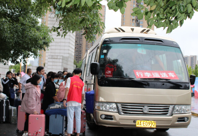 校内运行大巴车流水运送新生及行李 张婷/摄
