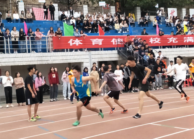 “加油~加油~”站在看台的观众们大声喊道,一场充满速度与激情的男子200米短跑决赛即将开始,各个选手们在起点处摩拳擦掌,跃跃欲试。这时,只听见裁判员一声令下“预——备,跑!”运动员们便如同离弦的箭一般向前冲去。来自体育学院的徐亮一马当先,而继续教育学院的王泽平紧随其后,其他对手也都“穷追不舍”。拐过弯道就是最后50米冲刺了,这时,王泽平双臂摆动幅度突然加大,腿部奔跑频率加快,利用弯道成功反超了徐亮,率先冲过终点,场上顿时人声鼎沸,加油、喝彩声不断。最终,王泽平获得男子200米决赛第一名,并在预赛中打破上届纪录。来自信息技术与管理学院的龙燕珍夺得女子组200米决赛冠军。在男女组100米短跑决赛中,来自体育学院的徐亮和会计学院的文英分别荣获男子、女子组100米冠军;来自继续教育学院的梁星亮和体育学院的郭胜蓝分别摘得男子、女子组400米决赛桂冠。