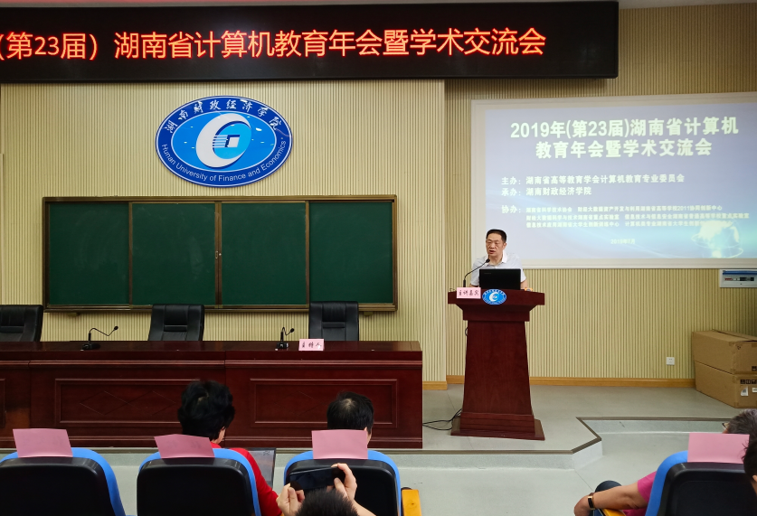 湖南日报·新湖南客户端7月17日讯(通讯员 贺灿卫 )7月14日,湖南省高教学会计算机教育专业委员会2019年(第23届)年会暨学术交流会在湖南财院二教学楼学术报告厅举行。来自湖南各高校从事计算机专业的教师代表、教改课题负责人、负责今年全省第15届大学生计算机程序设计竞赛的领队和教练、国内外专家学者代表及部分合作企业代表等150余人参加会议。会议由学会理事长邹北骥教授主持,湖南财院党委书记肖湘愚出席会议并致辞。