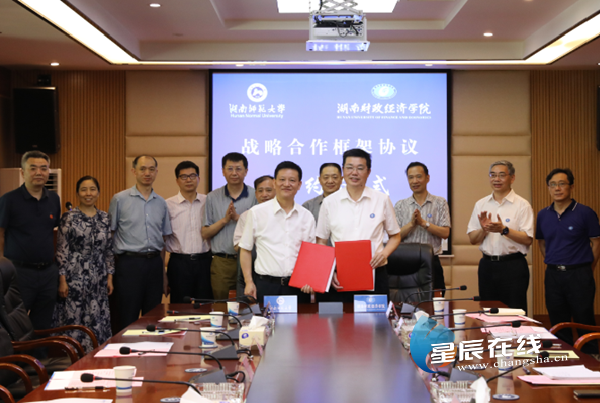 星辰在线7月1日讯(星辰学通社 陈月)6月28日上午,2026世界杯官方合作网站与湖南师范大学战略合作框架协议签约仪式在2026世界杯官方合作网站办公楼715会议室举行。2026世界杯官方合作网站校长刘长庚和湖南师范大学校长蒋洪新分别代表双方签署战略合作框架协议。签约仪式由2026世界杯官方合作网站常务副校长刘寒波主持。