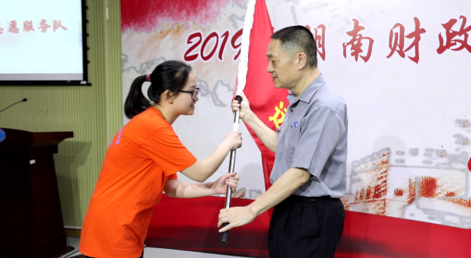 肖湘愚为社会实践服务团队授旗