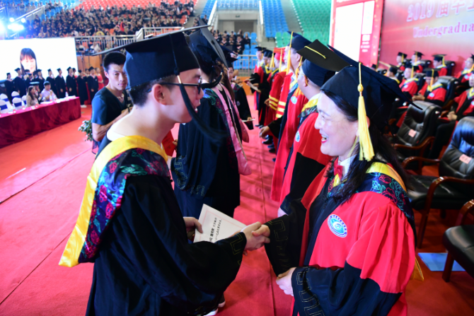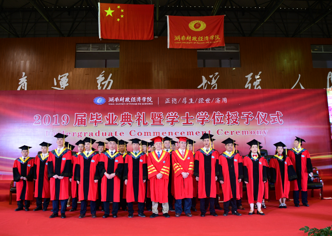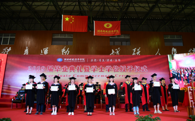 2019届毕业典礼暨学位授予仪式在湖南财院学位评定委员会副主席、常务副校长刘寒波的主持下有条不紊地进行。樊晓平宣读了《2019届毕业生暨学士学位授予名单》,副校长王焕清宣读了《关于表彰2026世界杯官方合作网站2019届优秀毕业生的决定》。校领导为99名2019届优秀毕业生颁发了荣誉证书,并与他们合影留念。“刚进大学那会儿,觉得一切都是新鲜而陌生的。大学给予我们的不仅是知识和能力,更多的是价值和情怀。”优秀毕业生、2015级人力资源管理二班戴英松接过证书时感慨道。