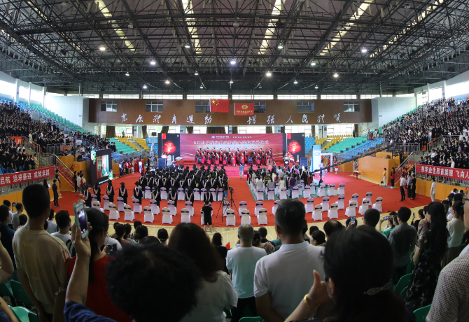 湖南日报·新湖南客户端6月21日讯(通讯员 陶甄 摄影 邵佳丽 陈龙 邓伯初)“终于这一天来临,我们要各奔东西……”6月21日,对湖南财院2411名2019届毕业生来说是个意义非凡的日子。满怀对毕业生的深情祝福,湖南财院2019届毕业典礼暨学士学位授予仪式在体育馆举行。四年前,举办过开学典礼的体育馆是他们“梦开始的地方”,而今他们又一次汇聚在这里,郑重地穿上学士服,迎来本科四年的收获时刻。今天,他们将在这里告别“象牙塔”,开启人生新的征程。