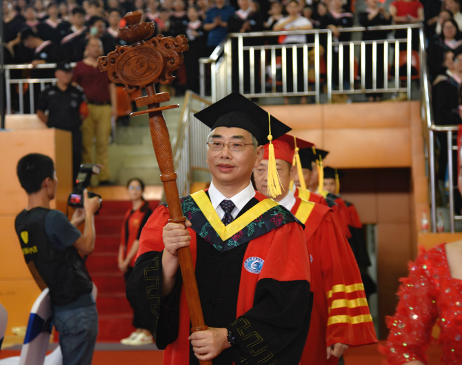 湖南财院学位评定委员会副主席、副校长樊晓平手持权杖带队入场 邵佳丽/摄