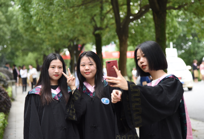“把前面的扣子扣好!”台下,后面的一名同学向前面的同学喊道。马上就到典礼最重要的环节——拨流苏了,毕业生们都很重视。人生中的第一次穿学士服的他们,还显得有些不太“专业”。这群四年前的萌新,如今自信地站在台上,俯身,接受拨流苏,与师长握手,微笑合照。拨完流苏,2015级会职班王涛长叹一口气:“感觉像是整个青春的落幕。流苏从右边拨到左边,像极了我翻开了人生的新篇章,踏上了新征程”。