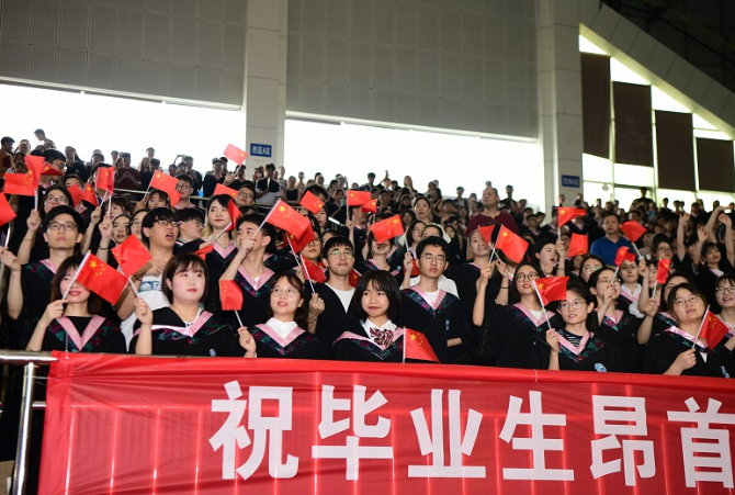 当校歌响起的那一瞬间,不少毕业生瞬间就红了眼眶。在他们心中,与此同时响起的是毕业离歌。“再见”二字是那么沉重,有人哭着说,有人笑着说,有人酝酿了许久,却终究舍不得说出口。转眼大家就要各奔东西,有些人可能说完再见,就再也见不到了。“再见了,财院的小猫咪们。”2015级造价一班罗冰清说道。