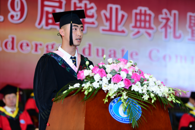 2015级国际经济与贸易专业三班刘博文代表全体毕业生致毕业感言 陈龙/摄