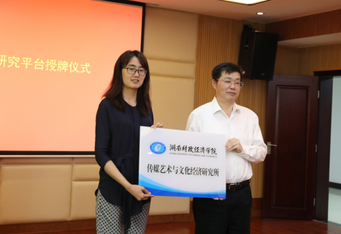 刘长庚为湖南财院传媒艺术与文化经济研究所授牌 何妍/摄
