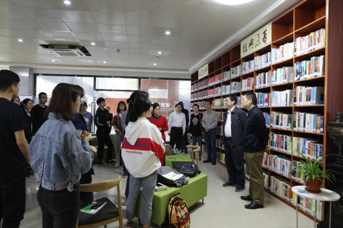 在活动进行中,湖南财院党委书记肖湘愚、校长刘长庚、副校长刘建民来到了阅览室,分享了他们的读书感悟。“读经典,不能用电子书代替纸质书,要把读书和思考结合起来。”“读万卷书也要行万里路。”“要博学与阅读并重,从而形成自己的思想。”句句诤言,启发着当时在座的各位。
