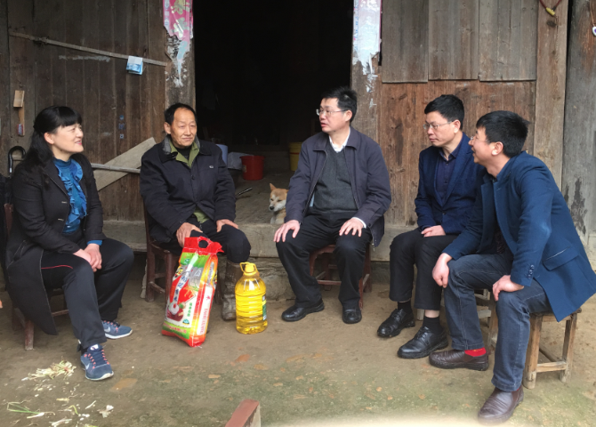 座谈会后,刘长庚一行实地考察了村级卫生室的选址建设情况。走访调研期间,刘长庚还走访了自己的结对帮扶贫困户8组毛进付家庭和仍未脱贫的8组的毛进和家庭,详细询问和了解两户的家庭收入情况,为他们宣讲扶贫政策,并为他们送去了慰问物资。樊晓平走访了未脱贫的16组颜家华家庭和颜学付家庭,为他们送去了慰问物资。