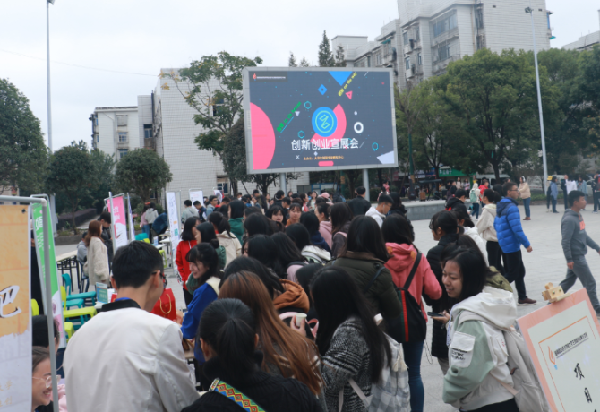 活动现场,30多个展板展示了学校创新创业政策体系、创业孵化基地、创业项目介绍、创业典型人物风采、创业创业大赛回顾等内容,杞颗树、大学生家教中心、夏忆服装有限公司、大学生家教中心、九洲学生服务工作室、智慧财务管家、女书密语、优享加等入驻创业园的10多个创业项目进行了现场实物展示,吸引了众多师生驻足观看或体验。