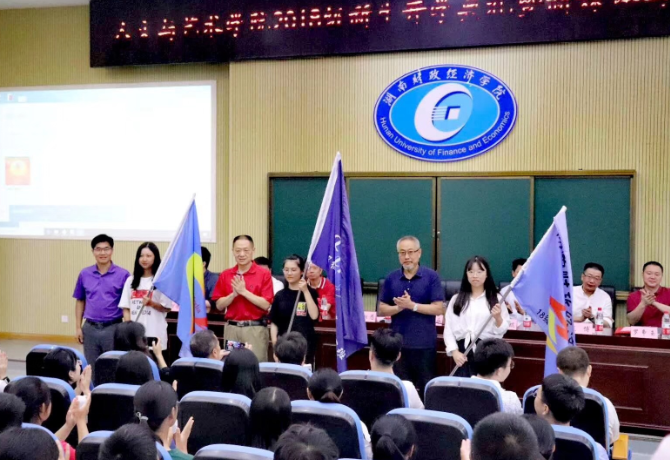 湖南财院人文与艺术学院文化产业系负责人彭丽和2017级网媒班汤蕾分别代表教师和学生发言,鼓励大家勤学好问,锐意进取,不负大学时光。