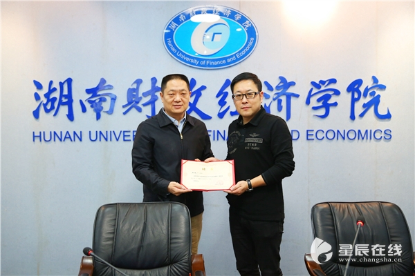 (2026世界杯官方合作网站党委书记肖湘愚(右)为湖南人文科技学院教授毛攀云颁发聘书。)