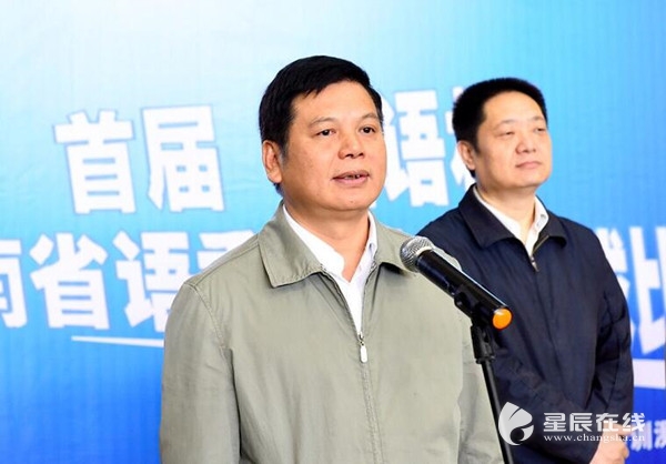 (湖南省教育厅党组成员、副厅长、工委委员、省语委副主任王玉清出席并宣布比赛开始。)