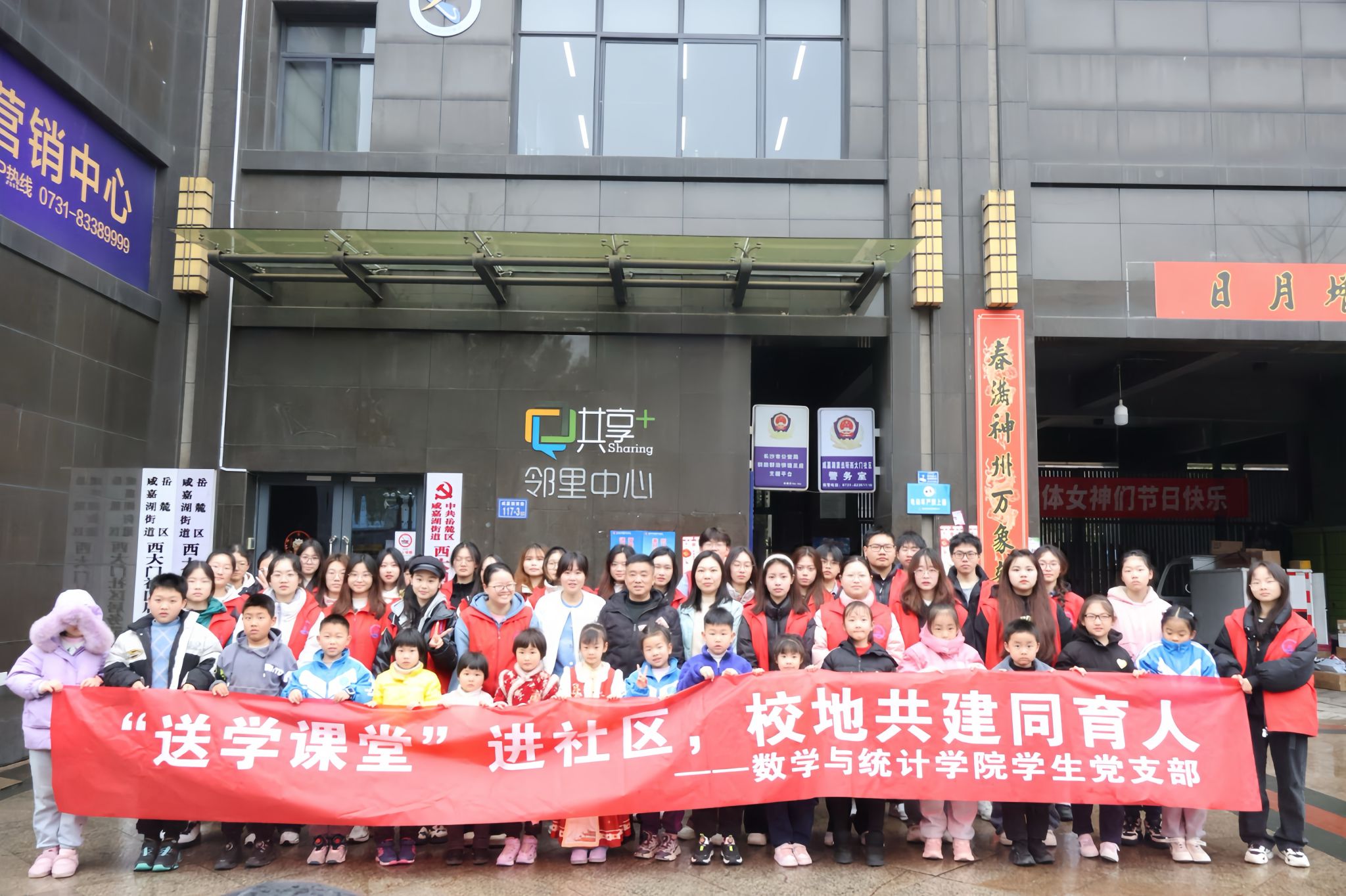(本网讯)3月9日,世界杯官网数学与统计学院联合湖南湘江新区咸嘉湖街道西大门社区开展“送学课堂”活动。西大门社区党总支书记冯志峰、数学与统计学院党总支副书记杨艳出席。