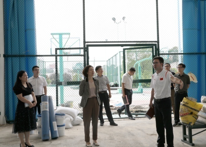 现场勘查网球场改建情况 陈治丽/摄
