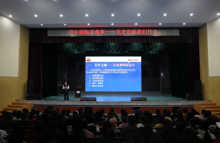 报告会上,张志初以“领航百年正青春—党史告诉我们什么”为题,从“百年之前--长夜难明赤县天”“百年之路--雄关漫道真如铁”“百年之悟--人间正道是沧桑”三个篇章,通过PPT图文演示、视频播放、互动式交流,将我们党百年奋斗历程的历史脉络、伟大成就和宝贵经验娓娓道来,引导在场师生从党的伟大历史起点中感悟初心使命、从党的历史和经验中汲取开拓前进的智慧和力量。