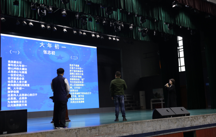 张志初邀请两位学生上台朗诵其诗作《大年初一》