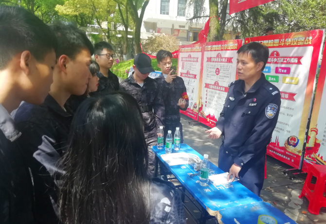湖南日报·新湖南客户端4月23日讯(通讯员 尹湘东)为深入推进扫黑除恶专项斗争,4月17日,湖南财院联合岳麓区公安分局、咸嘉湖街道办事处在第二教学楼主干道开展“扫黑除恶,净化环境,共建平安校园”宣传教育活动。