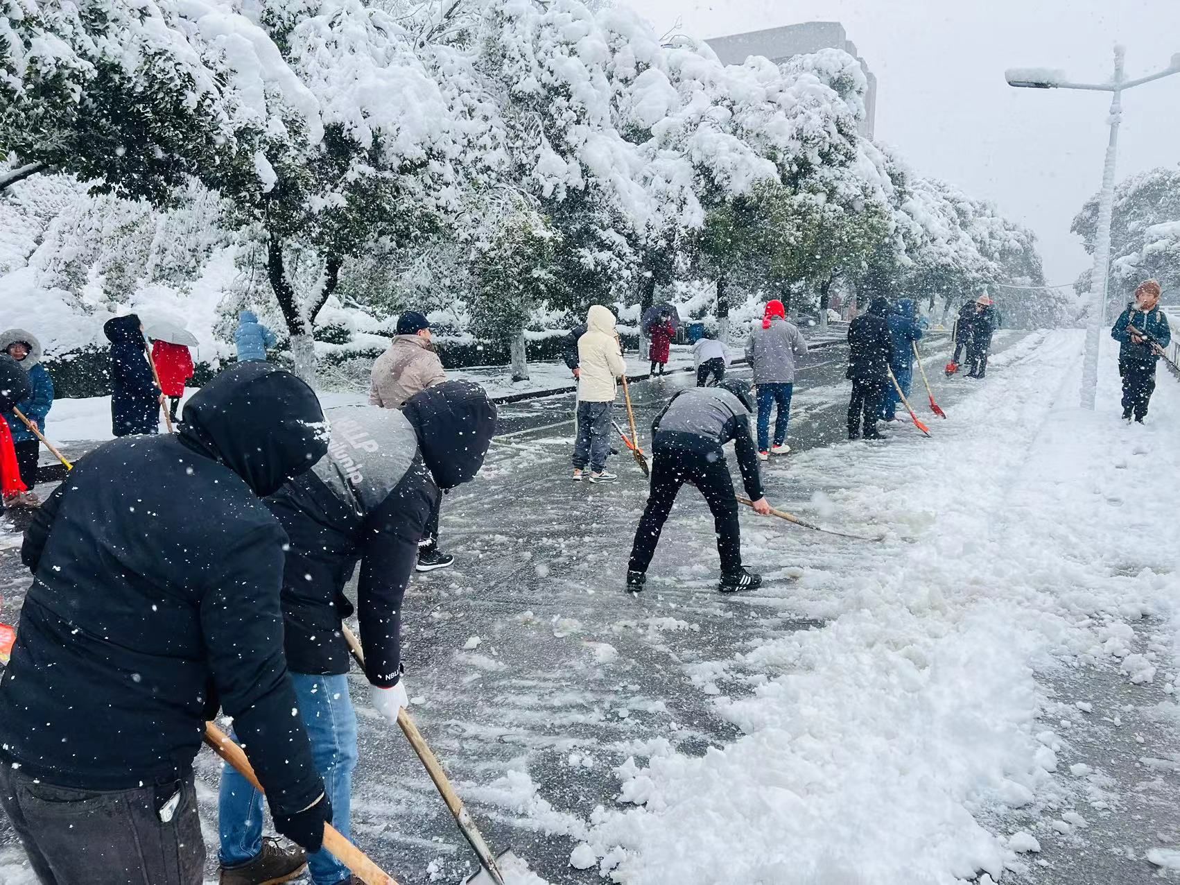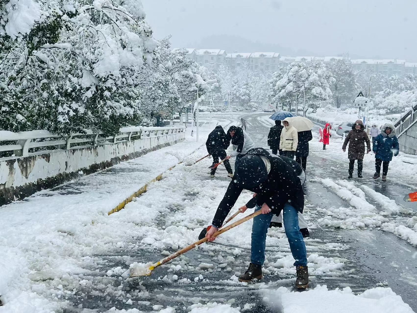干群同心齐上阵 铲雪除冰显担当