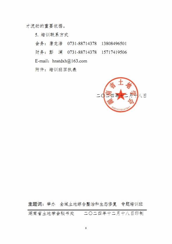关于举办全域土地综合整治和生态修复专题技术培训班的通知