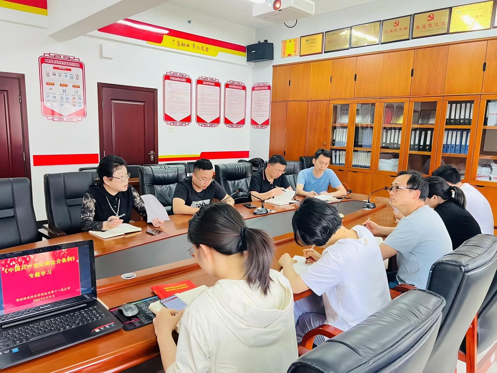 魏晓传达学习习近平总书记关于党纪学习教育重要讲话精神,传达了湖南省委十二届六次全会精神和学校召开安全稳定工作专题会议精神,并以“《中国共产党纪律处分条例》应知应会”为题讲授党课。