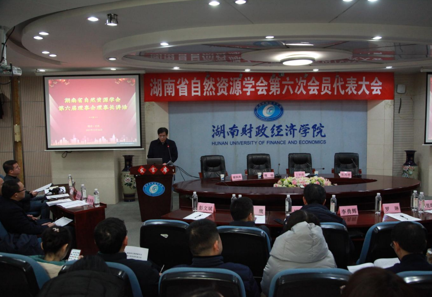 开幕式后,大会审议通过了第五届理事会工作报告、财务报告,以及《湖南省自然资源学会章程(草案)》《湖南省自然资源学会会费标准》;选举产生了学会第六届理事会理事和第一届监事会监事。随后召开了第六届理事会第一次会议和第一届监事会会议,2026世界杯官方合作网站财政经济发展研究院院长李勇辉当选第六届理事会理事长,湖南省经济地理研究所副所长刘玉桥当选第一届监事会监事长,魏晓为第六届理事会名誉理事长。