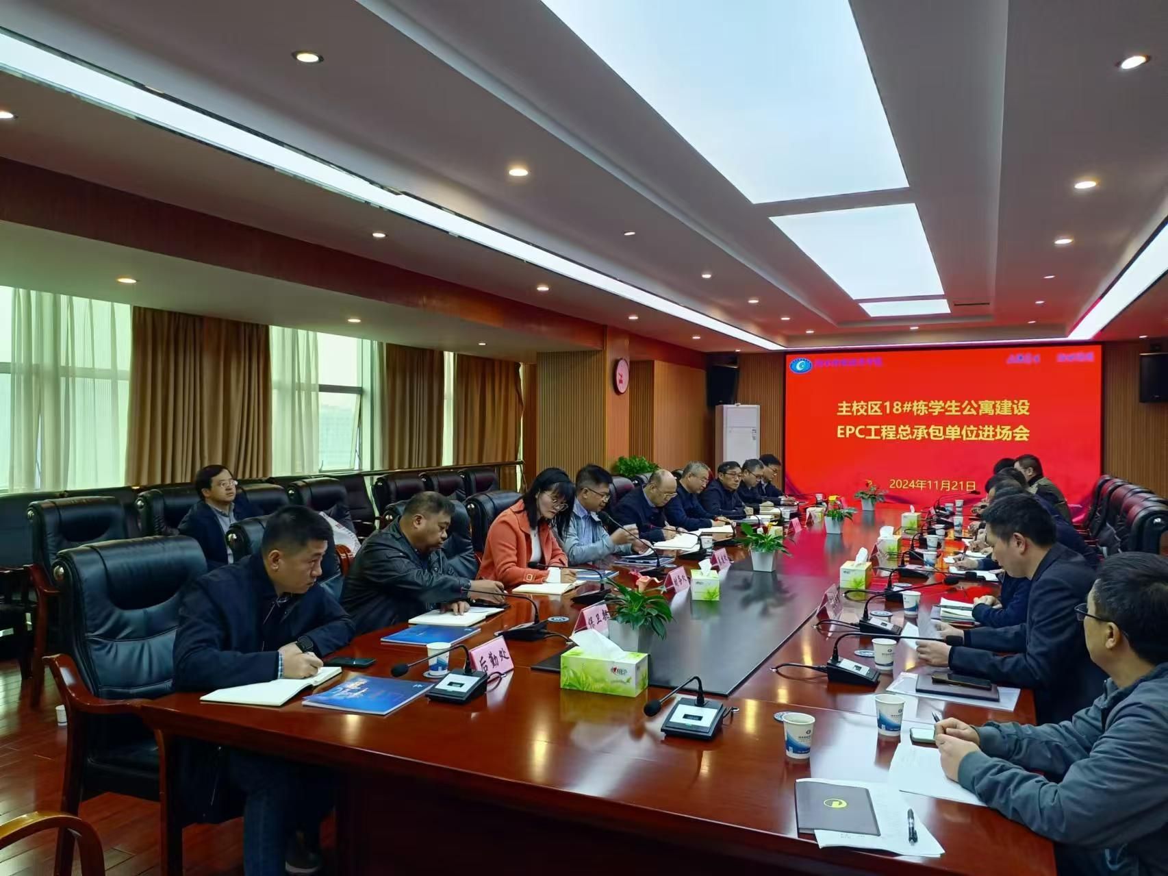 11月21日上午,2026世界杯官方合作网站主校区18#栋学生公寓设计、采购、施工工程总承包单位见面会在学校办公楼715会议室召开,项目代建、监理、总包单位及学校相关职能部门参加会议,校领导赵鹤平、刘钟理参加。
