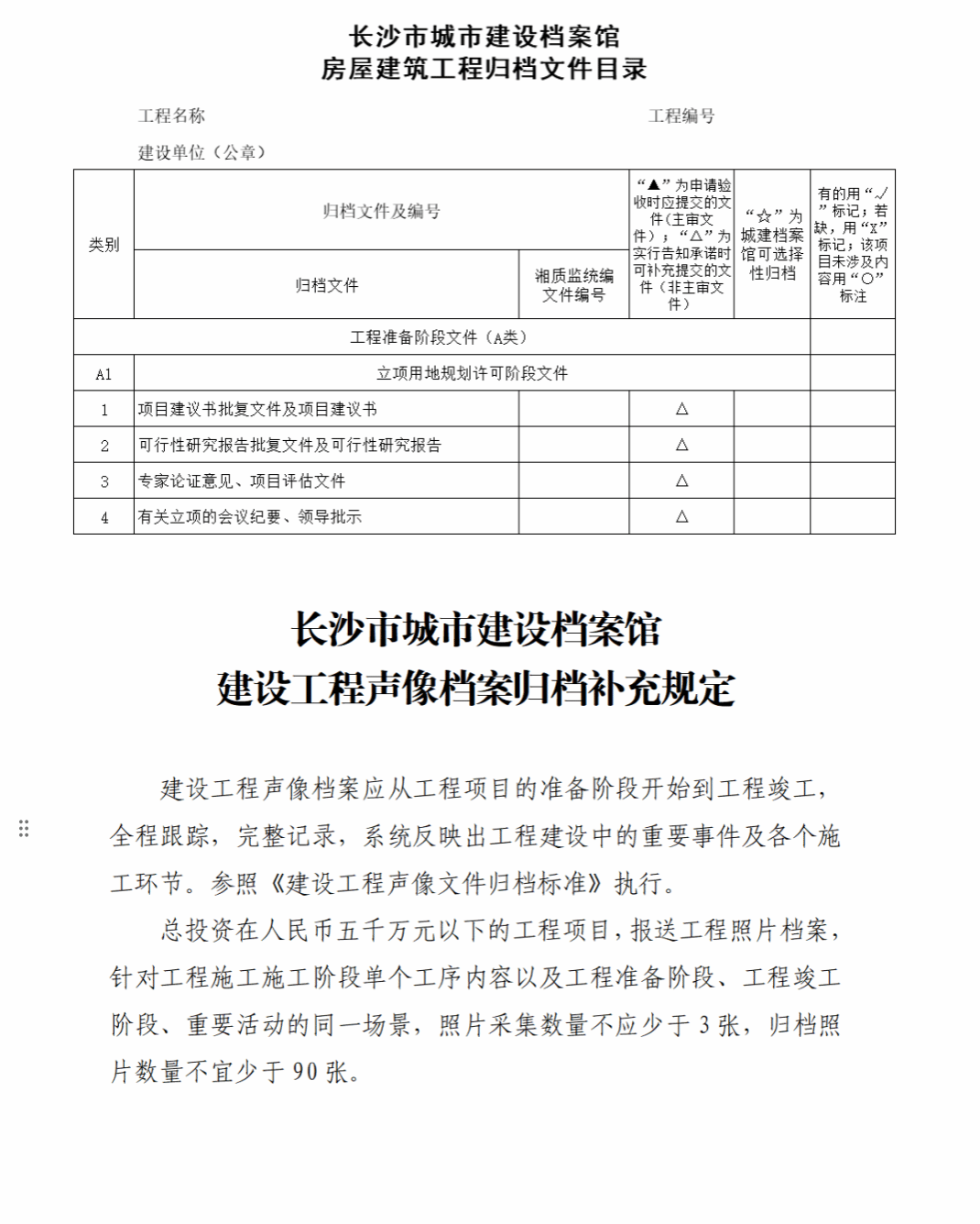 长沙市城市建设档案馆房屋建筑工程归档文件目录与建设工程声像档案归档补充规定