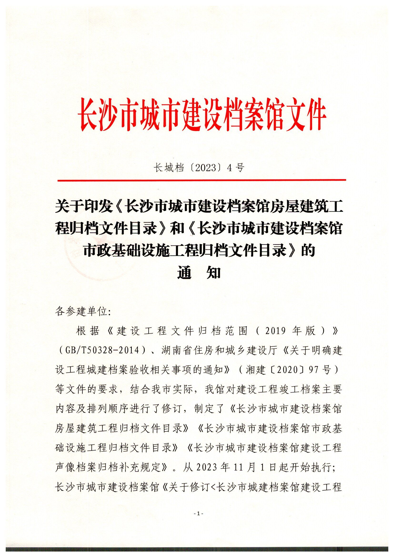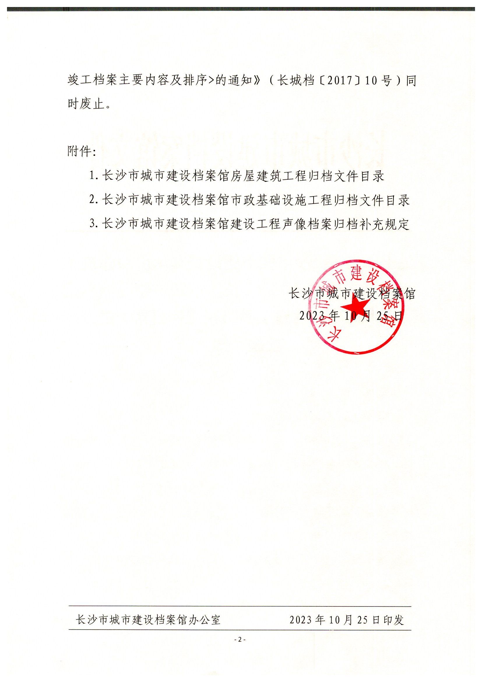 关于印发《长沙市城市建设档案馆房屋建筑工程归档文件目录》和《长沙市城市建设档案馆市政基础设施工程归档文件目录》的通知(长城档〔2023〕4号)