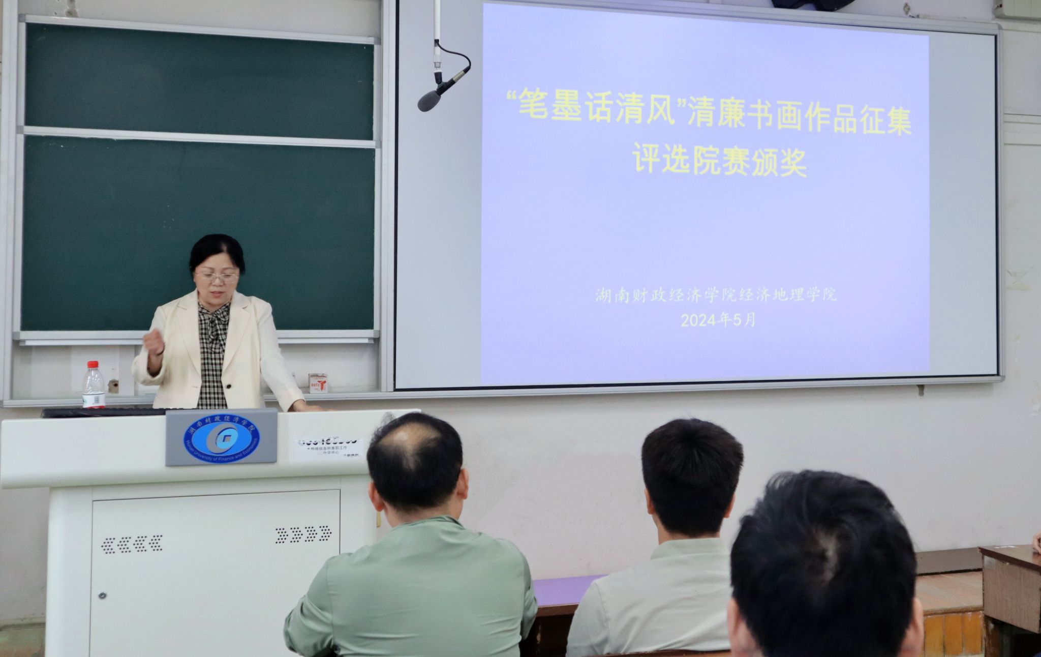 本网讯)为进一步弘扬清廉校园文化新风尚,有效发挥廉洁文化启智润心的教育作用5月10日,经济地理学院举办“笔墨话清风”清廉主题书画比赛圆满落下帷幕,学院直属党支部书记姚旭辉、党员师生代表及21、22级部分学生等50余人参与此次活动。