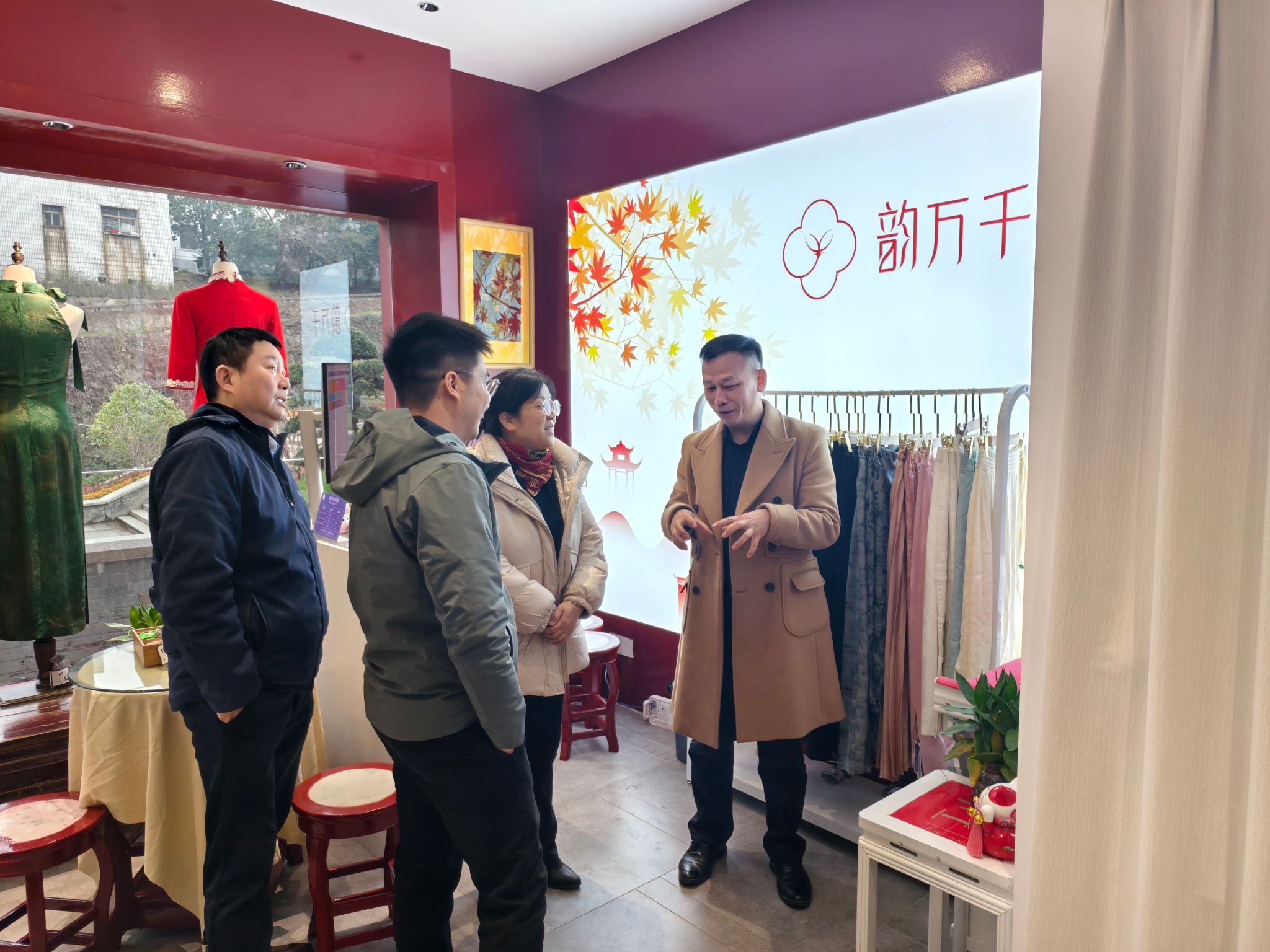 韵万千(长沙)服饰公司位于5A级风景区岳麓山公园东大门旁,自2012年创立以来始终深耕传统服饰文化创新领域,坚持传承与创新,主打原创设计旗袍、西装等服装;企业独创的“湘派旗袍”将湖湘文化元素与现代时装设计巧妙融合,开创了中式旗袍的新品类,该公司将借助中华民族伟大复兴的大势,立愿将中国传统服饰文化推广到全世界。