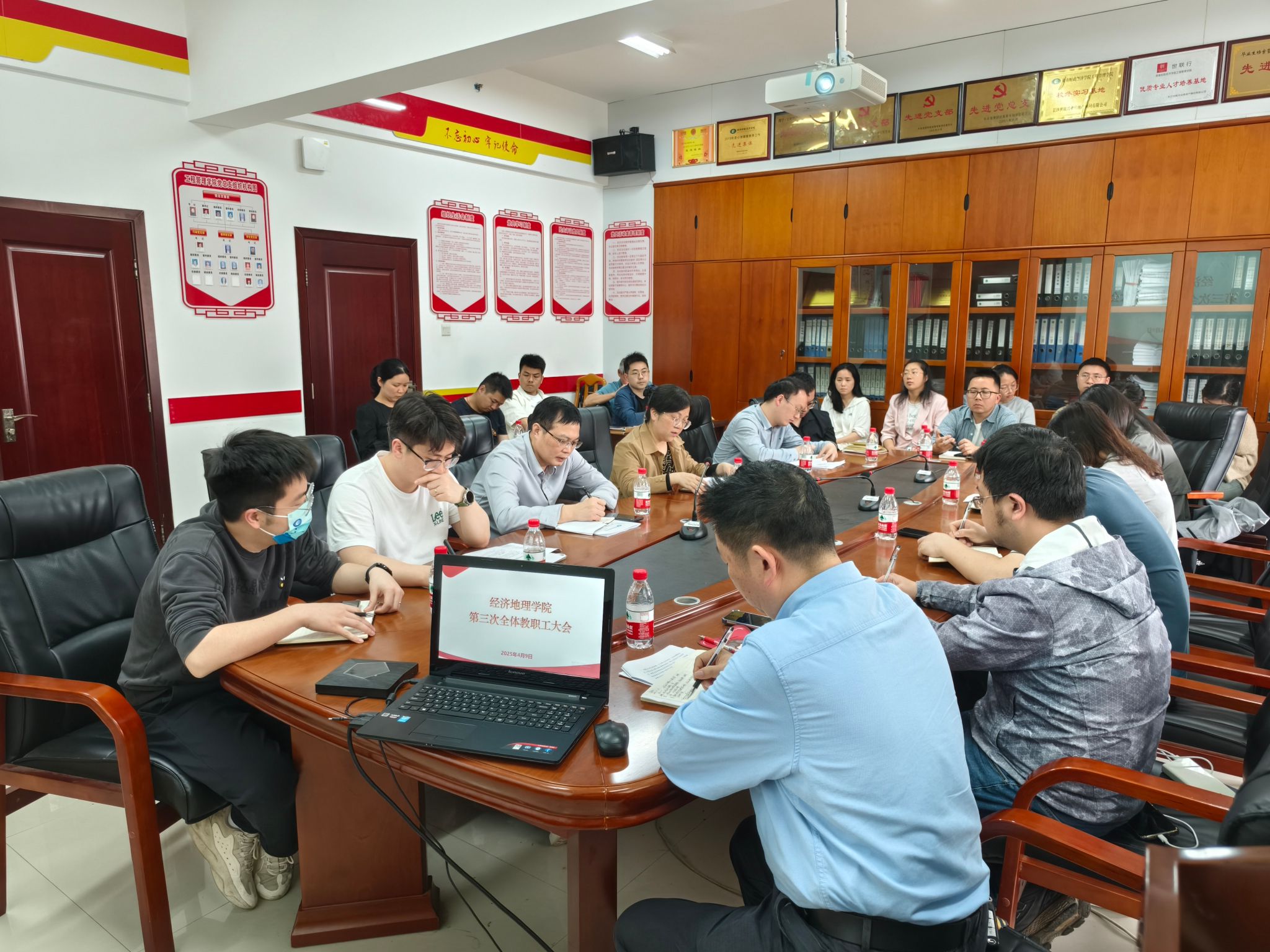 (本网讯)4月9日下午四点,经济地理学院在主校区办公楼911会议室召开学院第三次全体教职工大会,学院领导班子和全体教职工参加会议,会议由副院长苏昌贵主持。