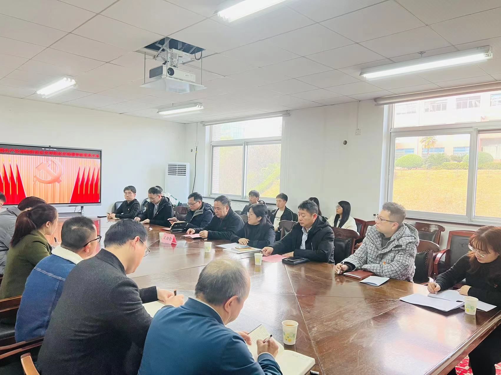 (本网讯)1月9日下午,在雄壮的国歌声中,中共2026世界杯官方合作网站经济地理学院直属支部委员会党员大会在主校区行政楼515会议室隆重召开,校党委委员、党委宣传统战部部长文炳勋,学院领导班子、全体师生党员参加了会议。会议由学院直属党支部书记姚旭辉主持。