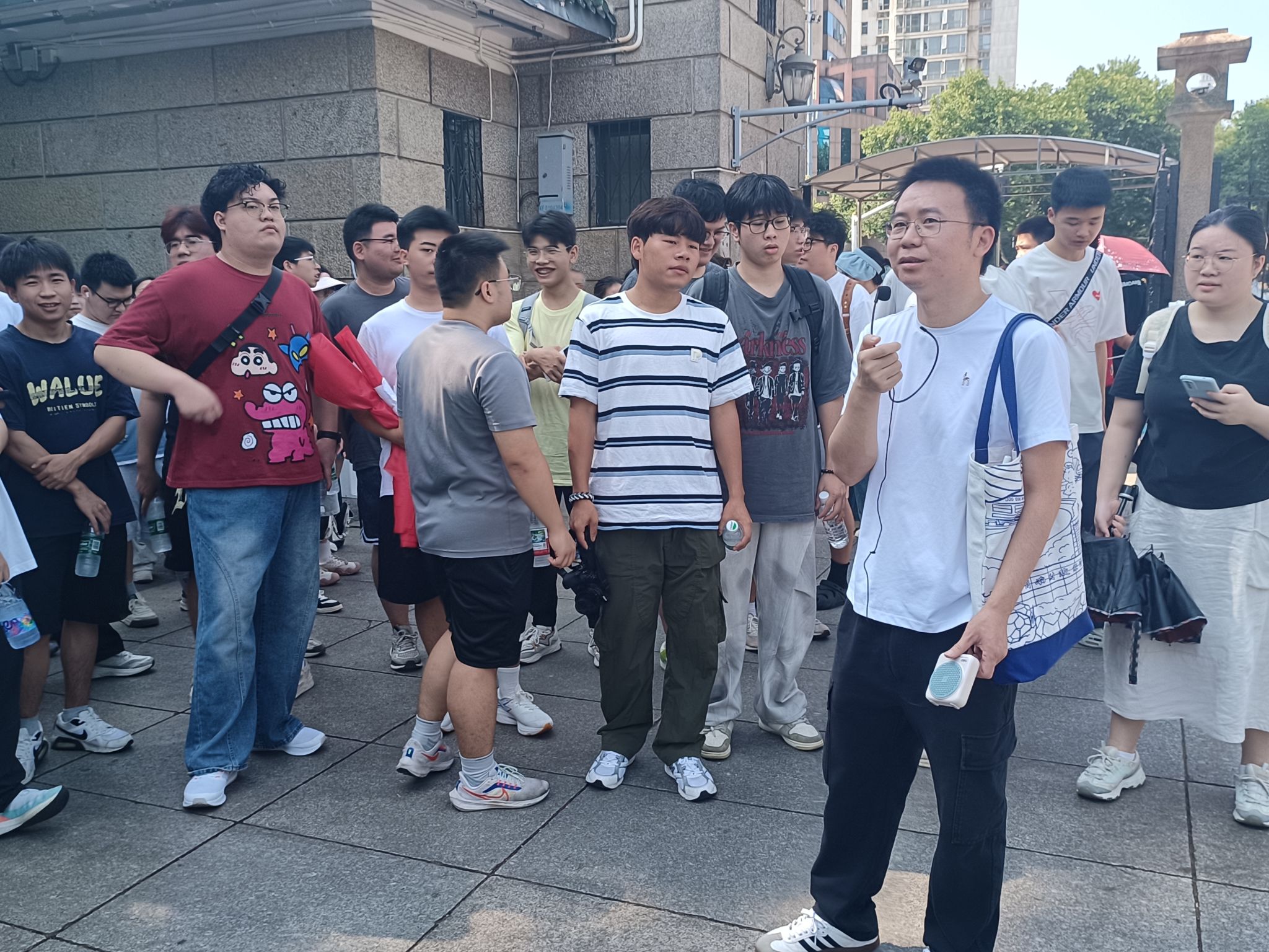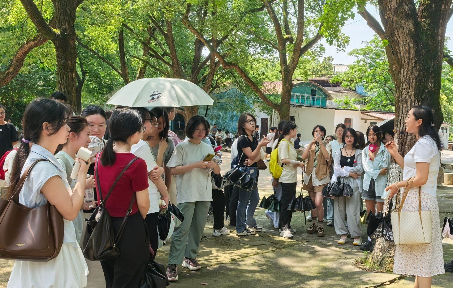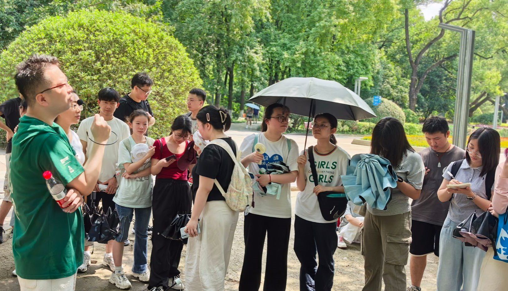 在自由参观环节,经济地理学院教师分别结合自己的专业领域,向同学们介绍分析参观过程中的专业思考。许骏老师从点线面规划角度,阐述如何通过合理的布局提升空间美学;廖炜老师聚焦景观设计,探讨功能分区的优化策略;汤洋老师分析公园对周边经济和房价的带动作用,阐释城市发展助力;马书琴老师着重讲解红色文化的传承与弘扬;余潇老师关注自然生态,分享水体植物保护的重要性。在老师们的讲解下,同学们对公园有了更深刻的理解,也对专业知识有了更直观的认识。