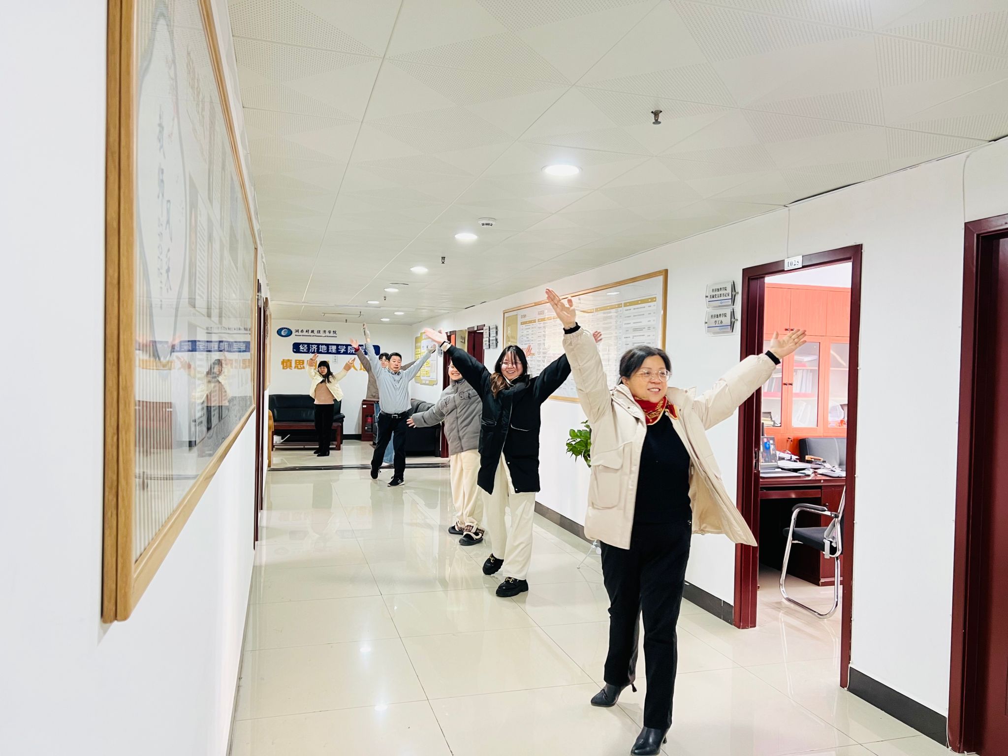 (本网讯)为进一步倡导健康文明新风尚,提升朝气蓬勃、积极向上的工作精神,经济地理学院分工会积极响应校工会“关于开展工间操活动的倡议”号召,组织开展每日工间操活动,为全体会员的精神生活注入了一抹律动色彩。