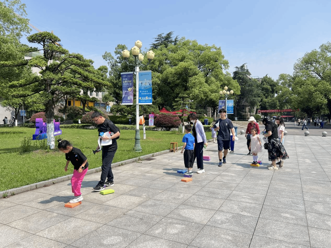 本次活动还设有套圈竞技、七巧板拼图和摸石头过河三项趣味关卡,亲子间默契配合,现场欢声笑语不断。