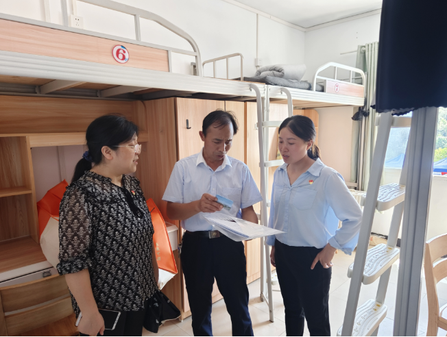 下午15:00,姚旭辉和学院各专业负责人一同深入新生宿舍进行走访慰问,向新生和新生家长的到来表示热烈的欢迎,同时解答学生和家长在生活、专业上的疑问,勉励新生尽快适应新的校园生活,树立远大目标,珍惜同学情谊,早日做好大学学习生活规划。学院领导和老师们的真情关怀让23级的“小萌新”们倍感温暖。