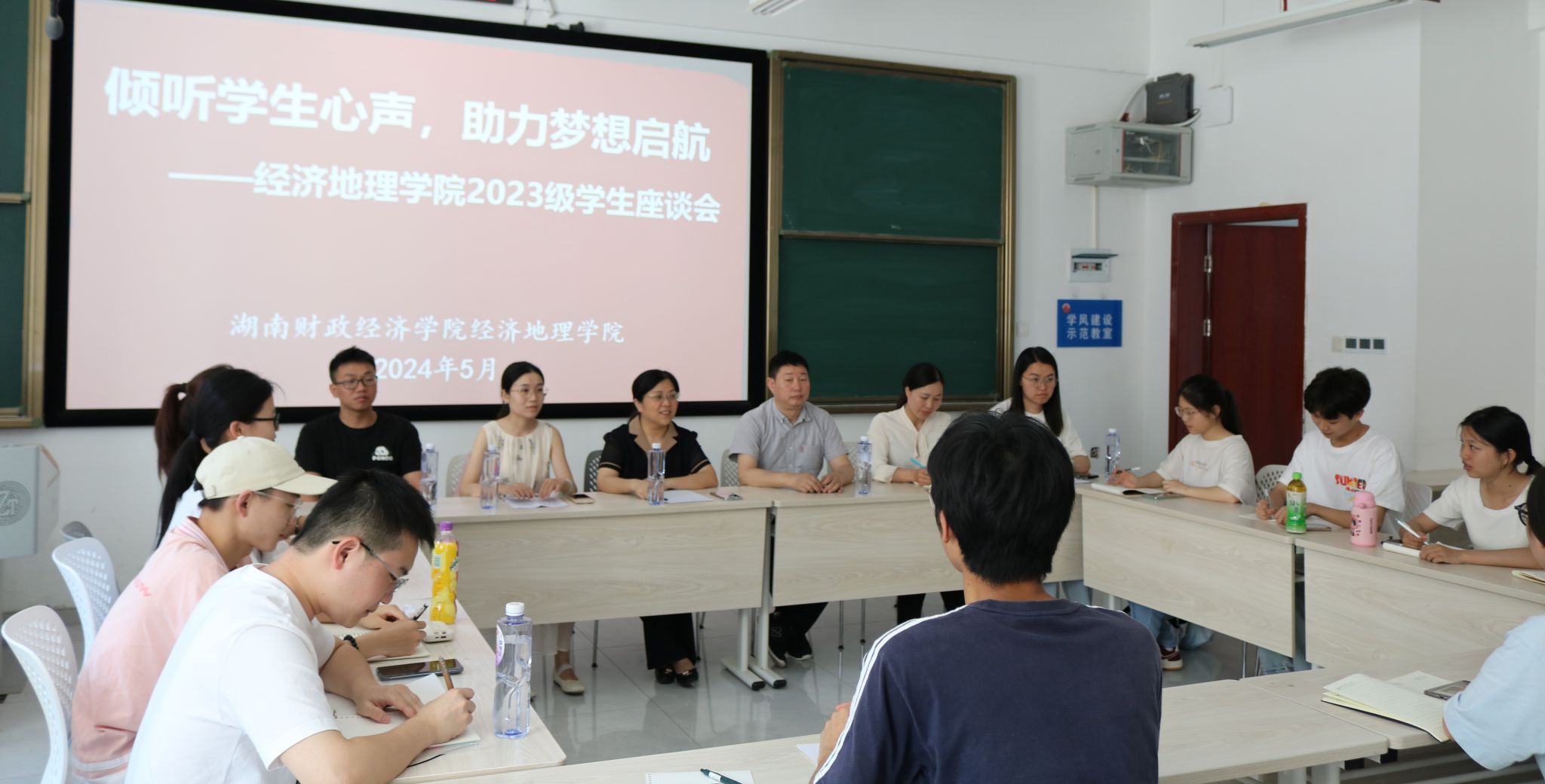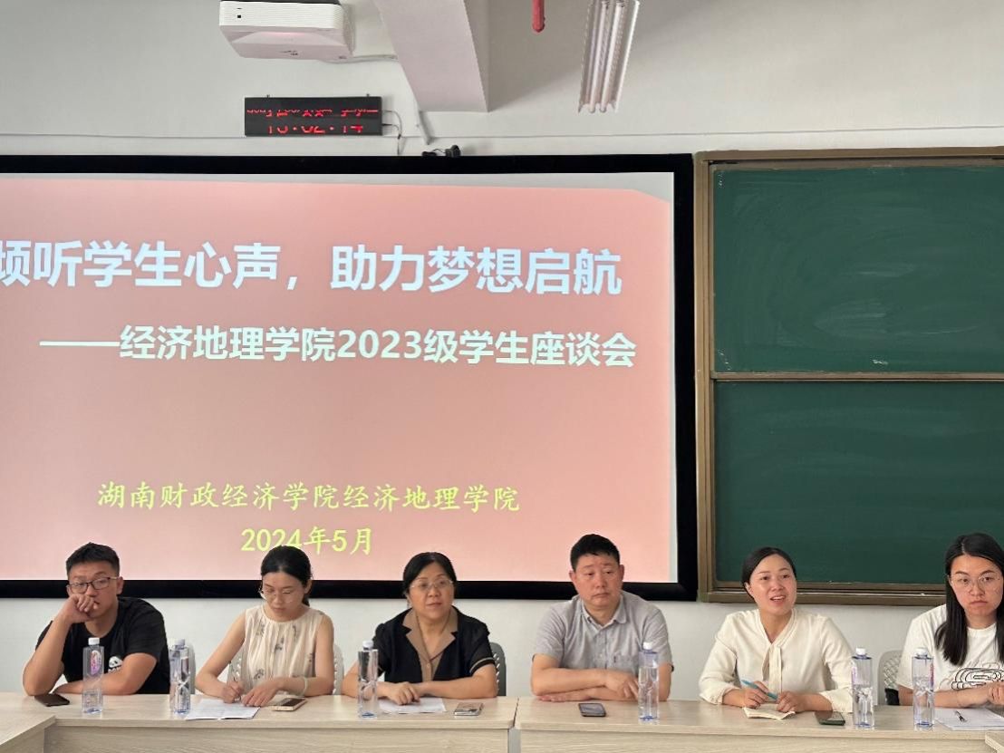(本网讯)为充分了解学生思想学习状况,畅通学生信息反馈渠道,进一步提升学院管理水平和服务效能,近日,经济地理学院在雷锋校区至诚楼1312教室顺利召开“倾听学生心声,助力梦想启航”师生座谈会,旨在通过面对面交流的方式及时解决学生关心关注的问题。座谈会由学工办主任刘娟主持,院直属党支部书记姚旭辉、副院长苏昌贵、博士教师代表以及23级部分学生代表等30余人参与。