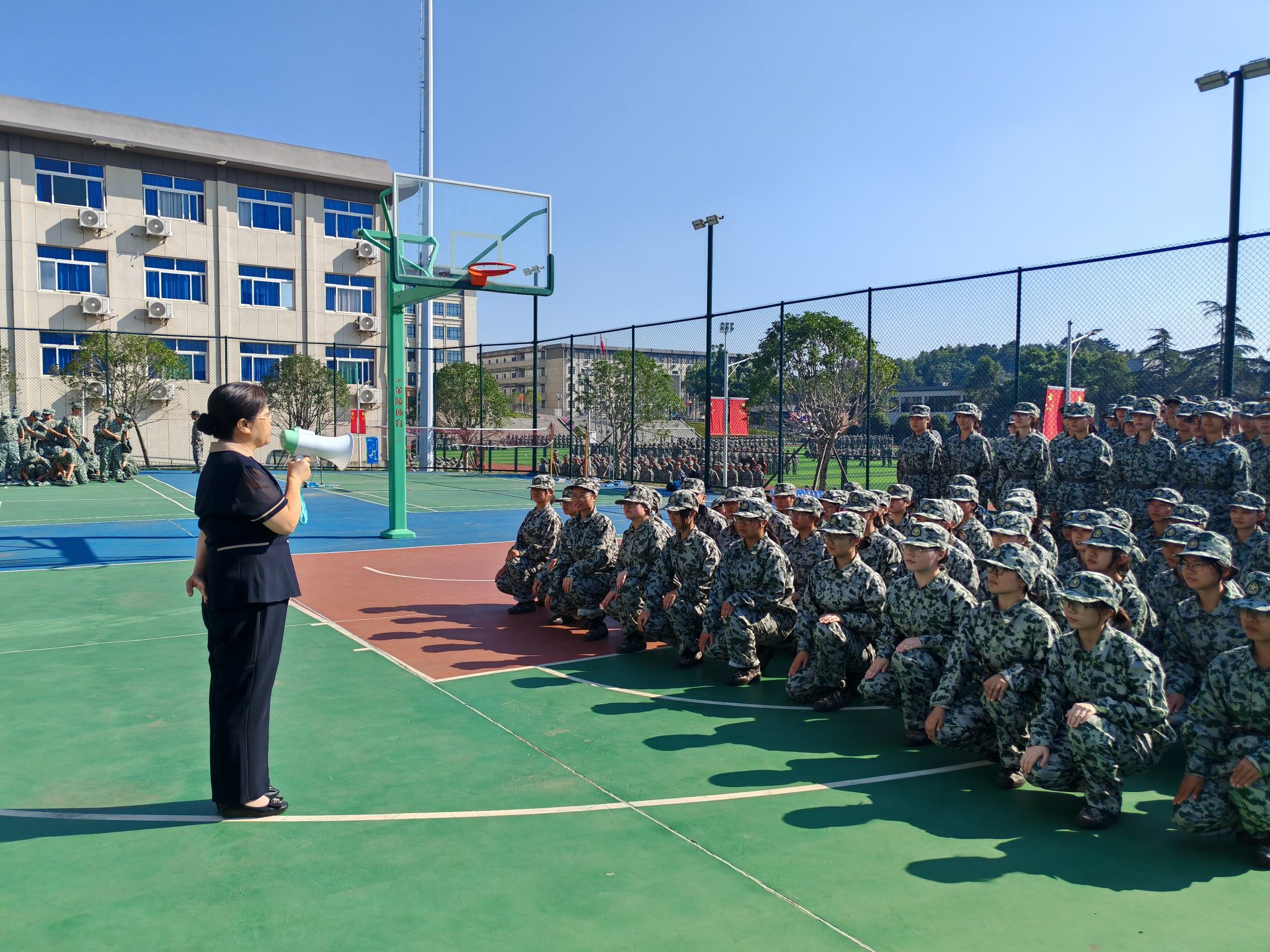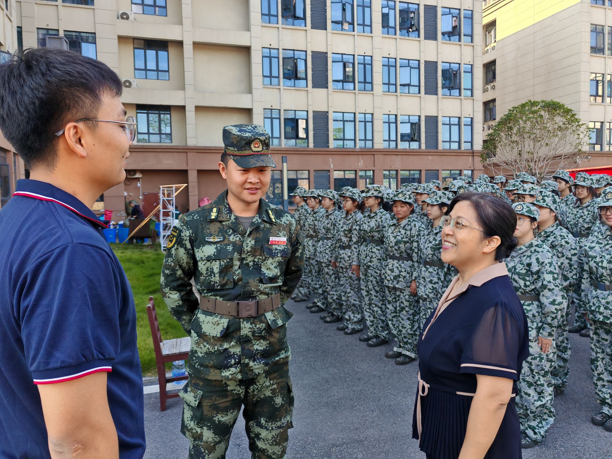 姚旭辉对教官的悉心指导表示感谢,对同学们在训练中展现出的高昂士气表示高度肯定,鼓励同学们在军训中要继续发扬吃苦耐劳、不畏艰难的精神,努力通过军训这一人生重要历练砥砺意志品质。另外,叮嘱参训同学们注意个人身体健康,劳逸结合,提高效率,注意自身健康安全,通过军训历练规矩意识和纪律意识,团结协作,争创佳绩,为顺利完成四年大学生活奠定坚实的基础。最后预祝军训取得圆满成功。