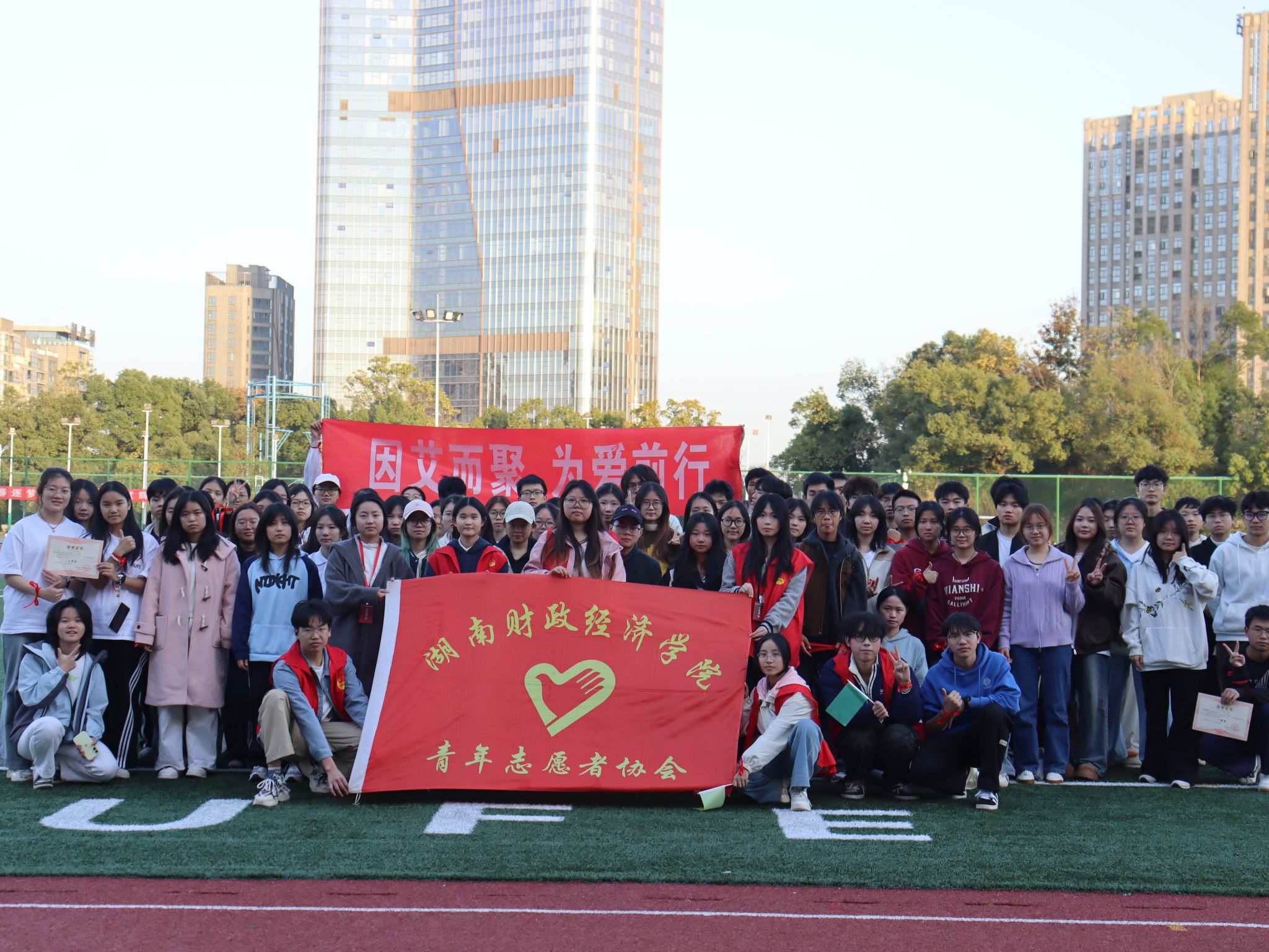(本网讯)为深化防艾知识普及,凝聚青年志愿力量,传递健康生活理念,11月28日,一场主题为“防艾传暖意,奔跑绘青春”公益竞技活动在主校区田径场开展。本次活动以“知识科普 + 趣味协作”的创新形式,将防艾理念融入实践,让健康意识与志愿精神在奔跑中传递。